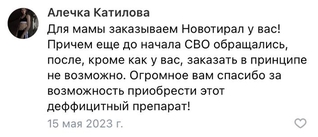 У меня врождённая недостаточность щитовидной железы и мне надо постоянно принимать гормоны. К 30 годам перепробовала кучу лекарств и остановилась на «Новотирале». Раньше просила знакомых из Германии, чтобы купили и выслали, но врач посоветовал мне этот сайт и теперь я заказываю здесь. Тот же оригинальный препарат за те же деньги, и ни от кого не зависишь.